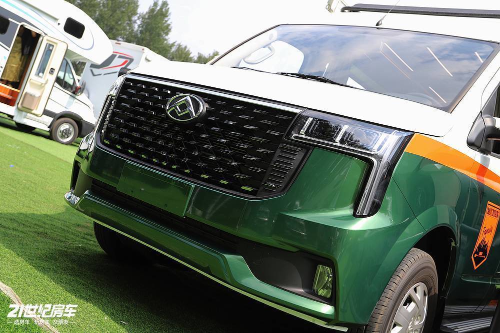 车身尺寸控制在长4950mm、宽1998mm、高2345mm,轴距3100mm,既符合蓝牌C照的驾驶标准,狭窄营地、城市街巷也能灵活穿梭。白、深绿双拼色的外观年轻时尚,停驻在营地内有很高的辨识度。
